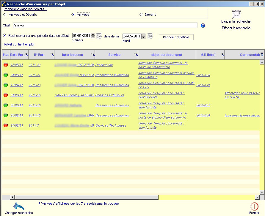 Retrouver un courrier peut parfois s’apparenter à une véritable aventure (information partielle, la personne en charge du dossier ne fait plus partie des effectifs, le document a été archivé, dégradé, perdu…). Une recherche multicritère s’avère alors indispensable. Néanmoins il convient de proposer des recherches immédiates au quotidien afin de garantir une véritable efficacité accompagnée d’une réelle sérénité.